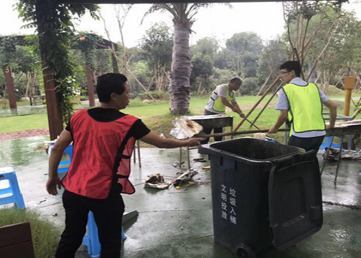 享受美食的同時,大家也沒有忘記愛護環(huán)境,主動將垃圾清理回收。